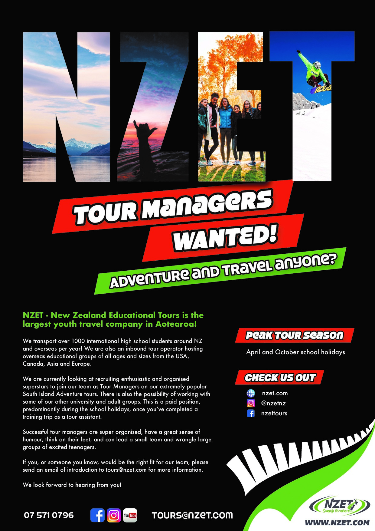 NZET Tour Managers Wanted Poster 2025